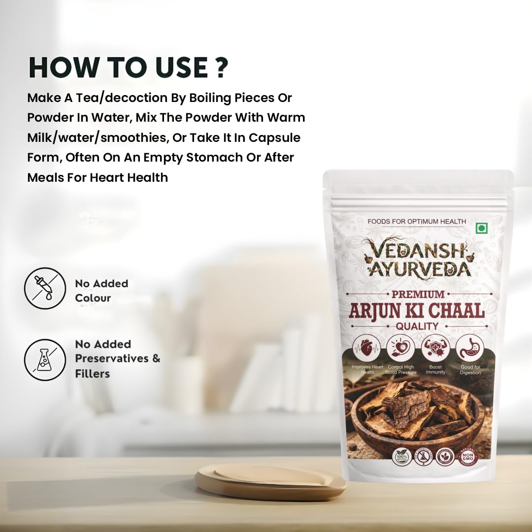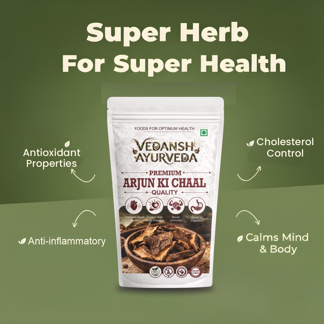Vedansh Ayurveda Arjun Ki Chaal (Arjun Bark / Terminalia Arjuna) – Supports Heart Health & Cholesterol Balance | 100% Pure Natural Ayurvedic Herb