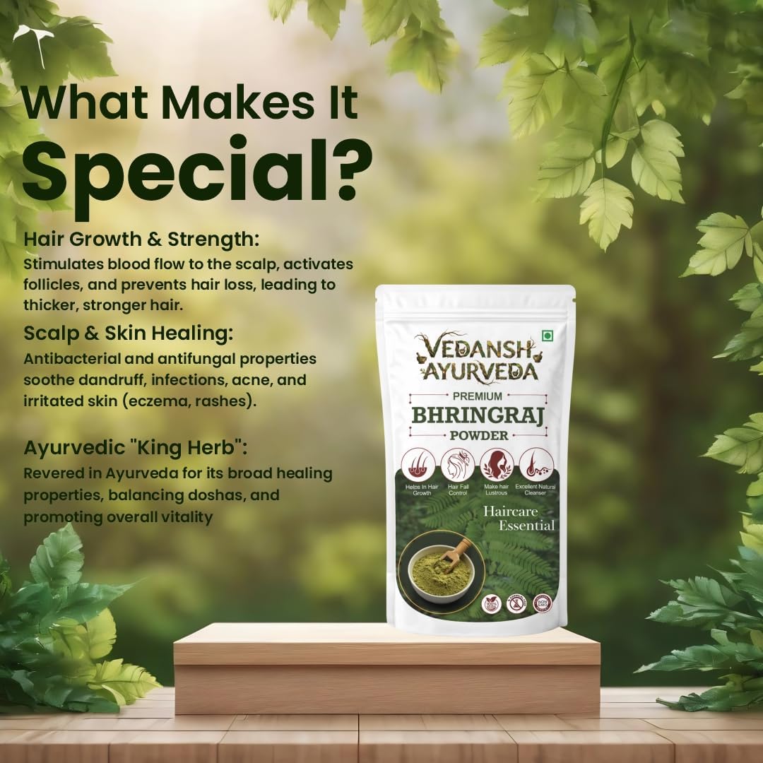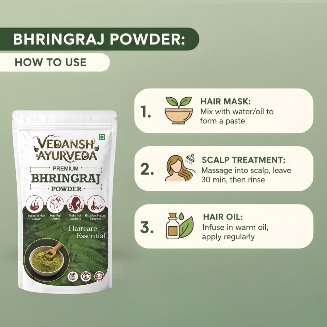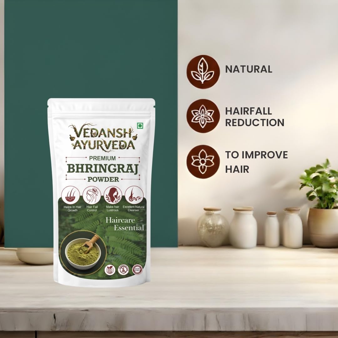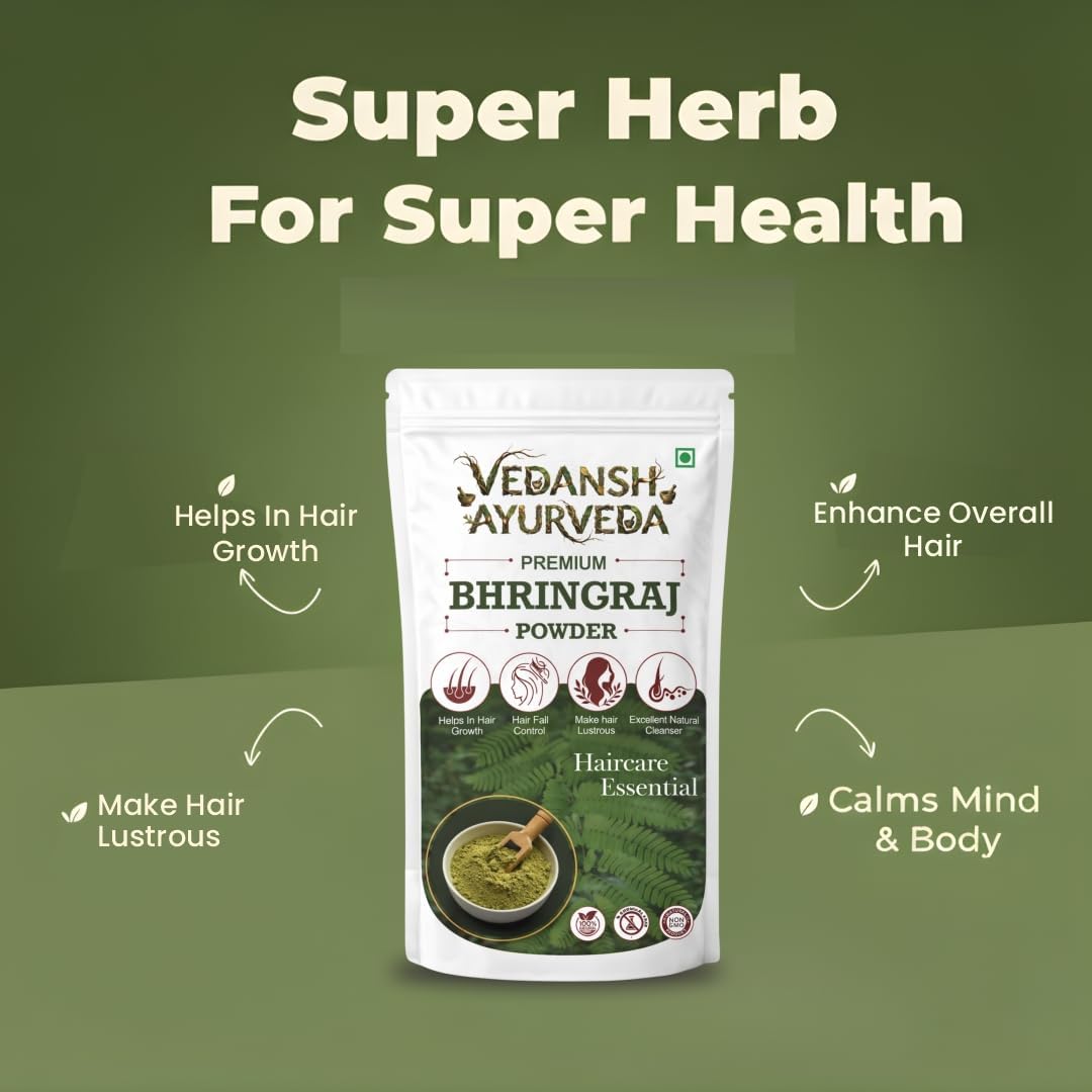 Vedansh Ayurveda Bhringraj Powder – For Hair Growth, Hair Fall Control & Hair Mask | 100% Pure Natural Herbal Powder | Chemical Free