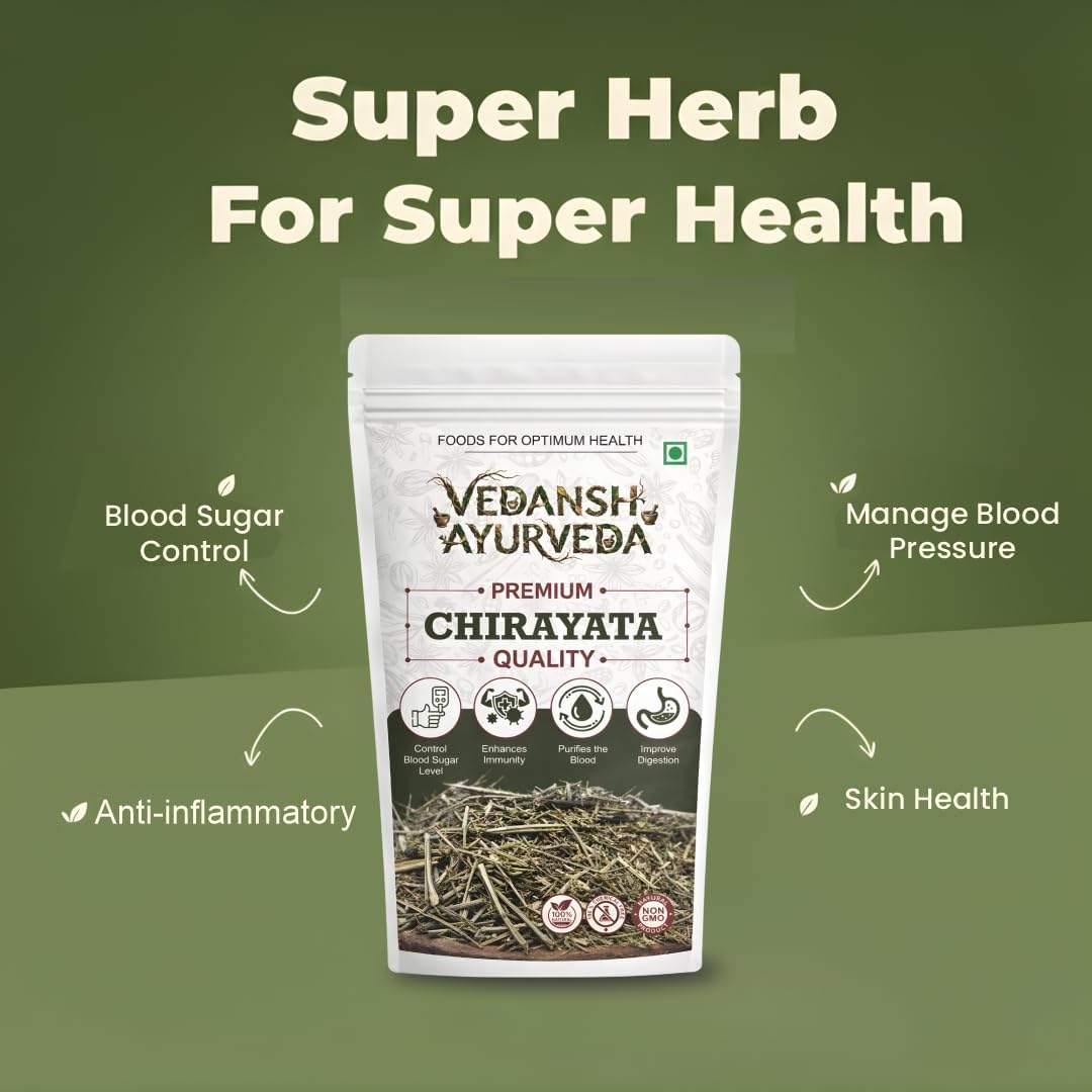 Vedansh Ayurveda Chirayata Powder ek powerful Ayurvedic herb hai jo Swertia Chirata leaves se banaya gaya hai. Ayurveda me Chirayata ko detoxification, blood purification aur immunity support ke liye bahut important herb mana jata hai.
